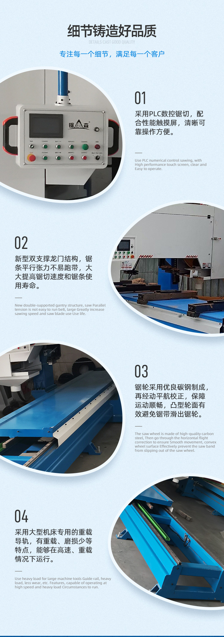 ②:升降絲(sī)杆:M40×20型号,品(pǐn)牌:德國力(li)士 ③:司服電(diàn)機:惠川3.7KW/2台(tai) ④:帶鋸輪軸(zhóu)承:SKF,2013型号/4個(gè),品牌:德國(guó) ⑤:減速機品(pin)牌:廣東傑(jie)豐 ⑥:PALC品牌:惠(hui)川 ⑦:觸摸屏(ping)品牌:7寸,惠(hui)川 |